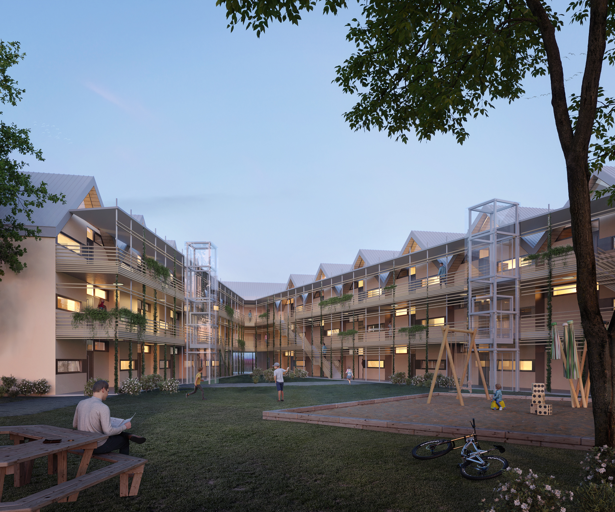 - Extensive use of wood as a sustainable and visually appealing material; oiled oak flooring, oak and larch decking, softwood façade elements