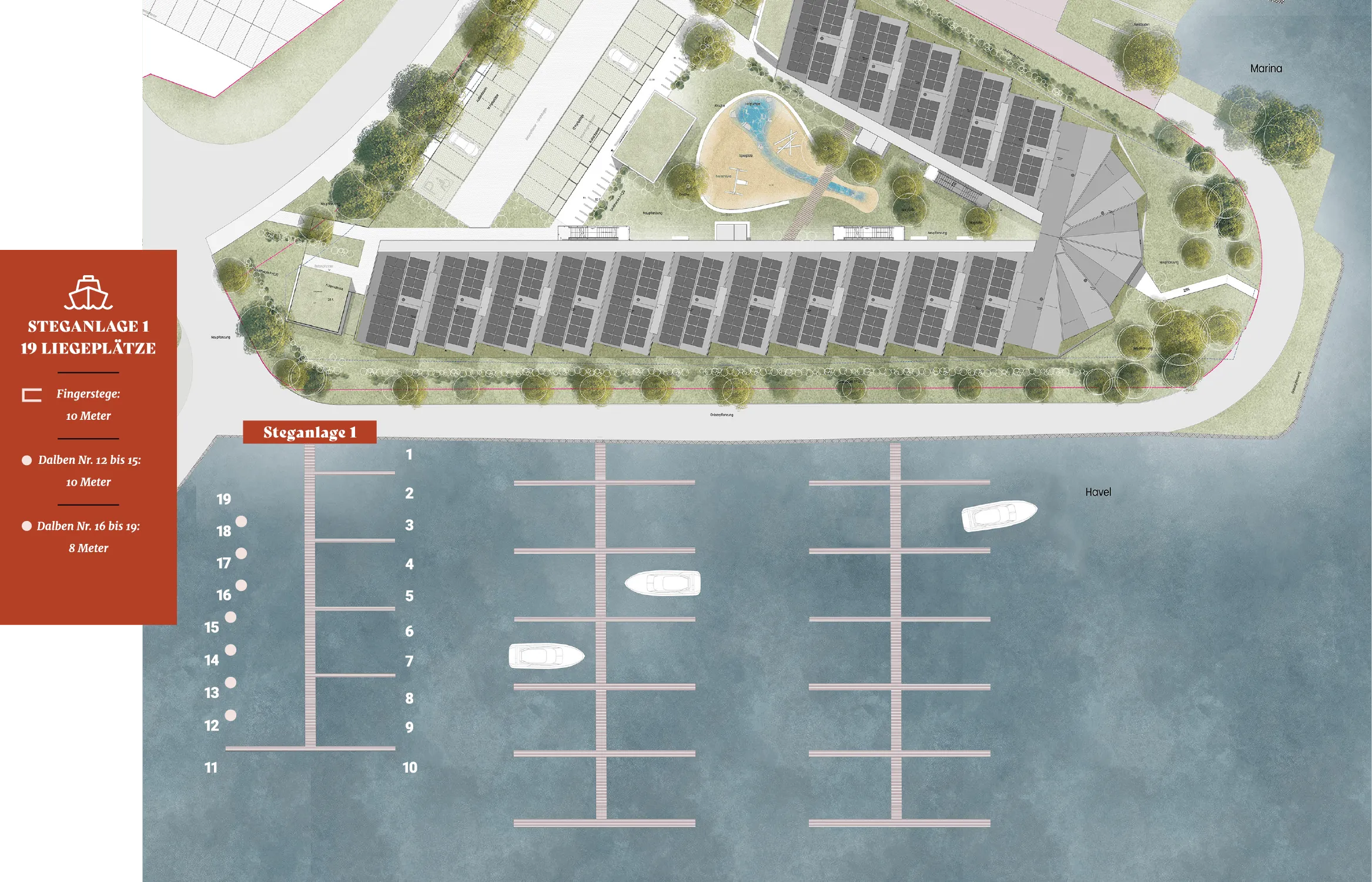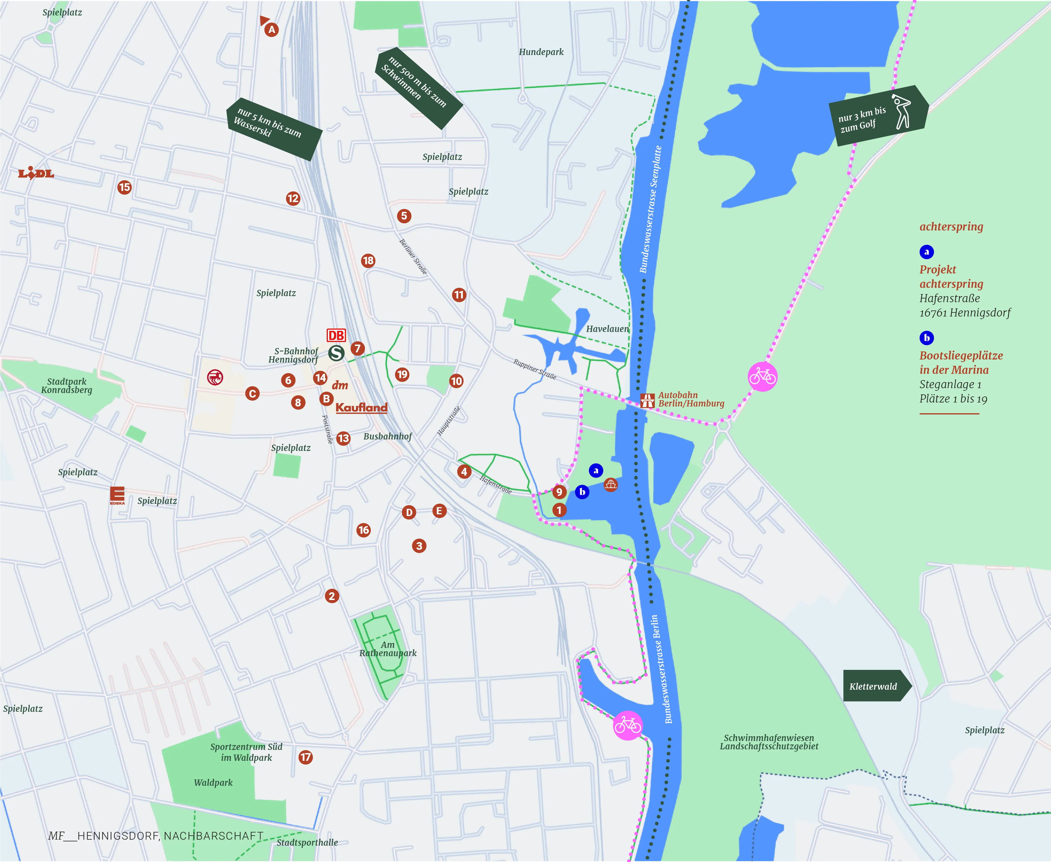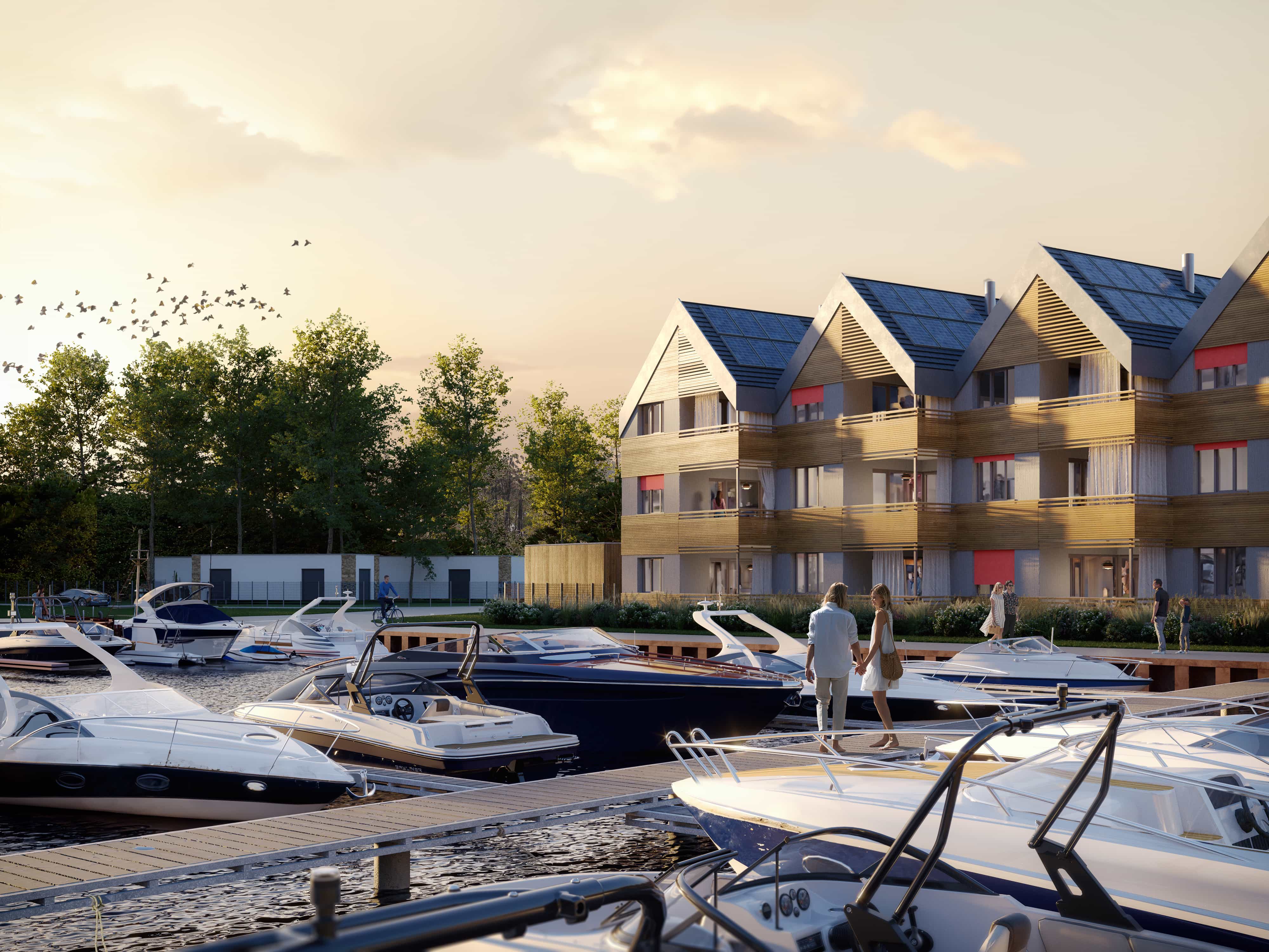 achterspring is a vacation: directly on the federal waterway between Hamburg, Berlin and the Mecklenburg Lake District. The buildings are consistently sustainable - the first DGNB-certified vacation apartment project in Berlin and Brandenburg.