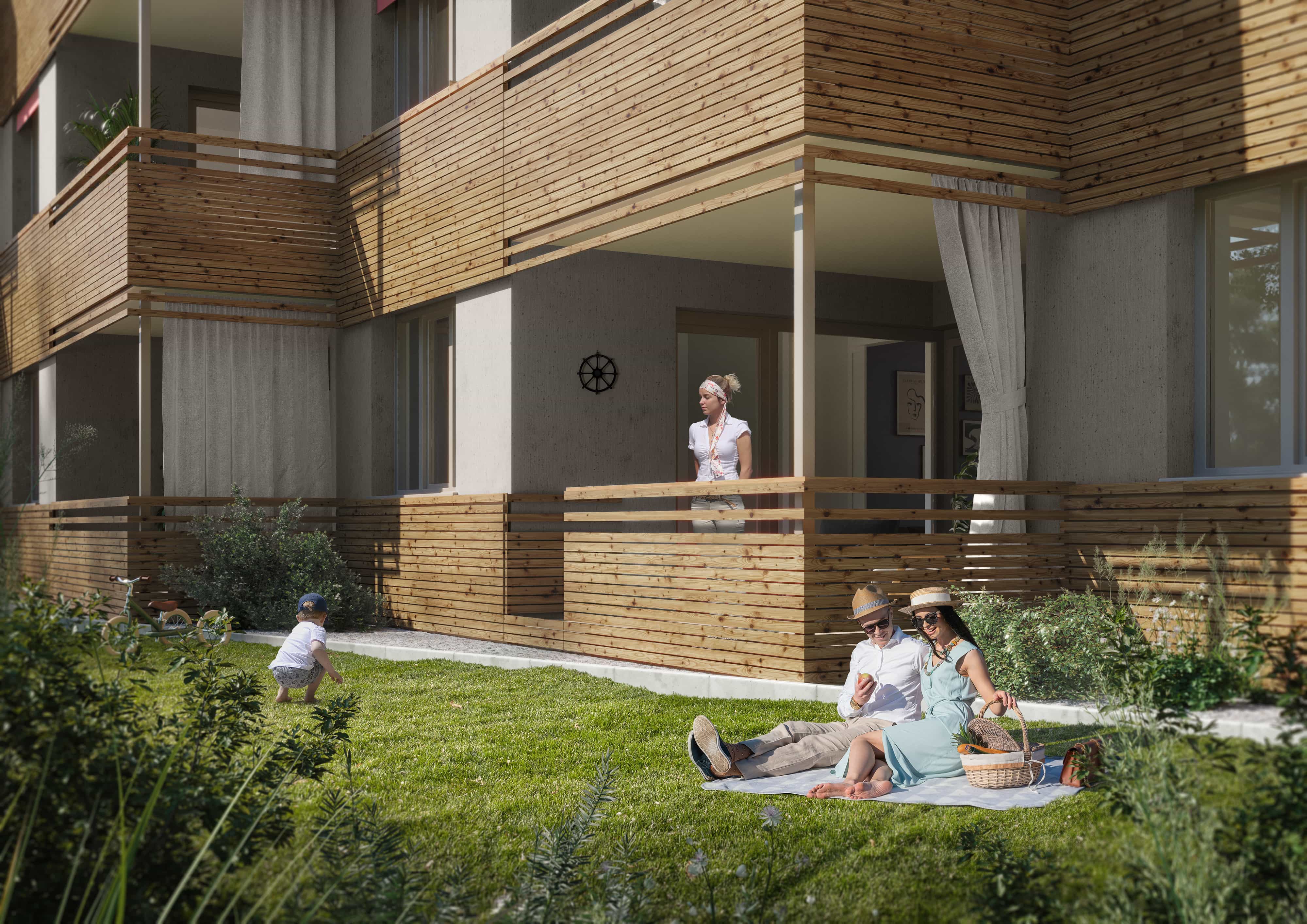 Further highlights: Balconies on the upper floors and green garden units on the first floor - creating a second living room with a view of the water.