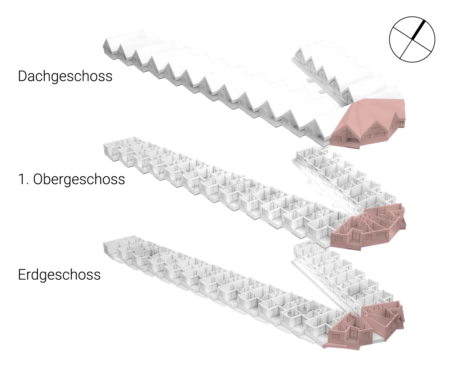 - Room heating and cooling via heat pumps in the form of a multi-split system with one outdoor unit and three indoor units per usage unit